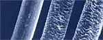 links: Bsp. 1 Schlechte Qualität; Haare mit zerstörter Schuppenschicht - Bsp. 2 und 3 Gute Qualität; mit natürlicher Schuppenschicht. |